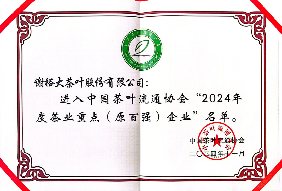 开幕式上,中国茶叶流通协会回顾了2024年度中国茶叶行业工作,展望了2025年度发展方向,并在活动现场发布了2024年度中国茶叶行业调查结果。谢裕大荣获“2024 年度茶业重点(原百强)企业”,连续十多年获评此项殊荣,充分彰显了谢裕大在茶产业发展中做出突出贡献。