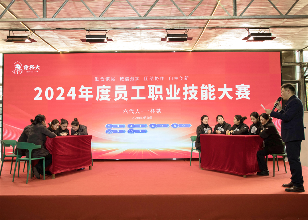 2024年12月20日,企业文化知识竞赛在谢裕大茶博园-茶缘阁文化大讲堂盛大召开,谢裕大总经理谢明之为大赛进行了开幕致辞,他表示职业技能大赛本质上也是一种培训,是为了提高每一位员工的职业素养和服务意识,希望大家通过这种以考代学、以赛代练的企业文化实践比赛,掀起企业知识学习高潮,并预祝参赛员工本着友谊第一,比赛第二的积极心态取得圆满胜利!