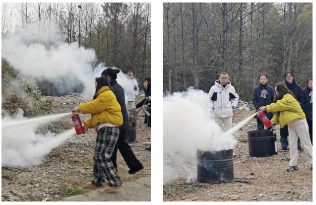 随后,在劳动研学大楼后广场及谢裕大茶博园开展了室外消防实操演练,专业培训老师针对消防栓、消防水带、干粉灭火器等消防器材的使用方法,分别向全体参训人员进行讲解,并要求大家一一对各种消防器材进行现场实际操作演练,达到全体员工都能熟练掌握使用的程度。演练坚持全过程贴近实战原则,按预定方案有序进行,牢树全体员工把安全隐患消灭在萌芽状态的安全意识。