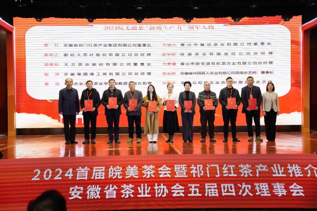 2024年12月27日,2024首届皖美茶会暨祁门红茶产业推介会在中国红茶之乡——安徽祁门成功举办。会上表彰了在2024皖美徽茶创优调查中涌现出的先进个人和单位,其中,谢裕大总经理谢明之荣获2024 皖美徽茶“新质生产力”领军人物称号,这一荣誉不仅是对他个人在茶产业领域卓越贡献的认可,也是对谢裕大品牌在推动茶产业高质量发展中所扮演角色的肯定。
