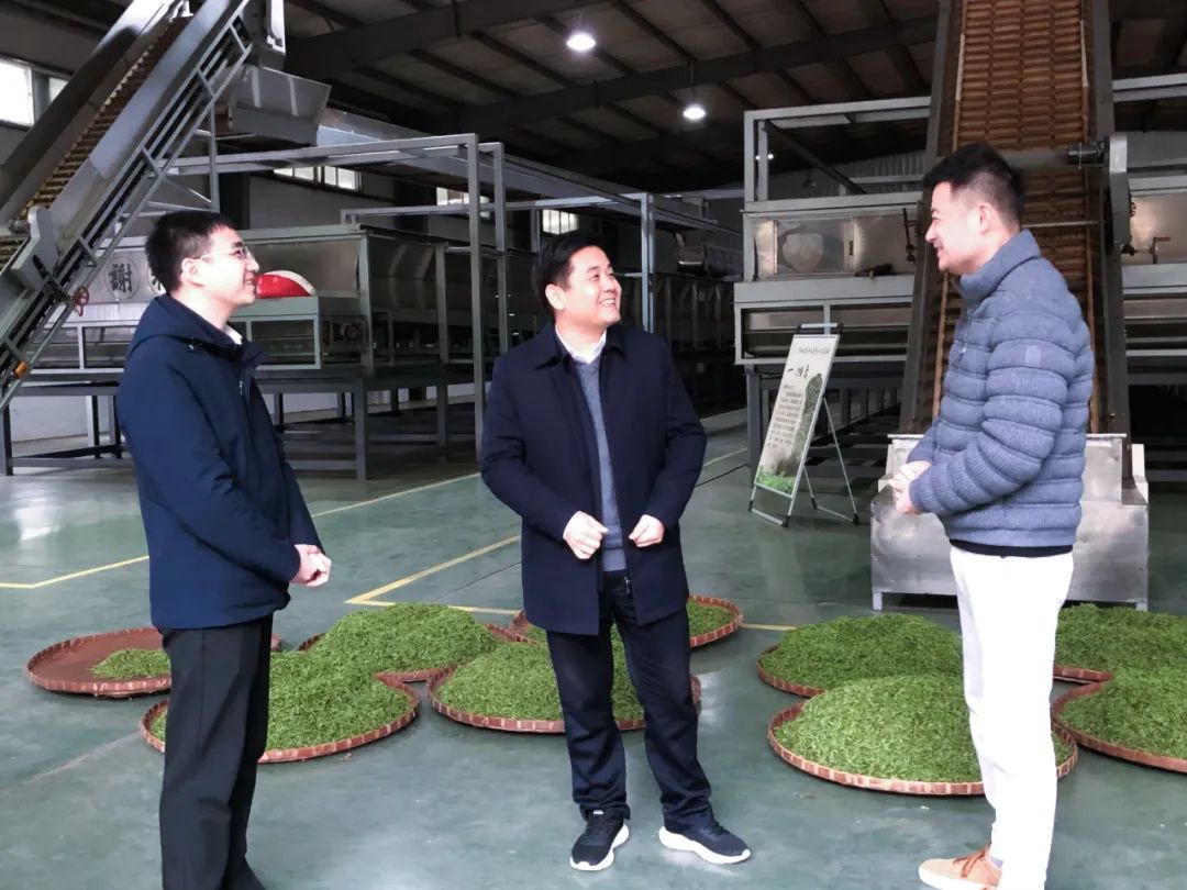 在谢裕大漕溪初制加工厂内,王苏平与前来交售鲜叶的当地茶农亲切交谈,细致询问今年春茶长势、采摘进度及鲜叶收购价格,并向谢明之深入了解春茶市场价格走势、富溪团体标准实施推进现状、企业线上线下销售情况。随后,深入黄山毛峰产线,实地考察了茶叶加工流程。