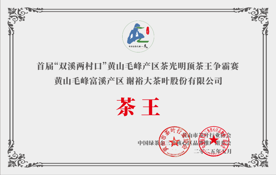 首届光明顶“茶王盟主”称号,既是谢裕大百年匠心的历史见证,更是未来征程的全新起点。未来,谢裕大将持续深化非遗技艺传承,强化科技创新动力,以“三茶统筹”发展战略推动黄山毛峰高质量发展。正如那穿越150年云雾的茶香,谢裕大始终以山河为证、与时光共酿,让每一盏茶都成为跨越世纪的品质承诺。